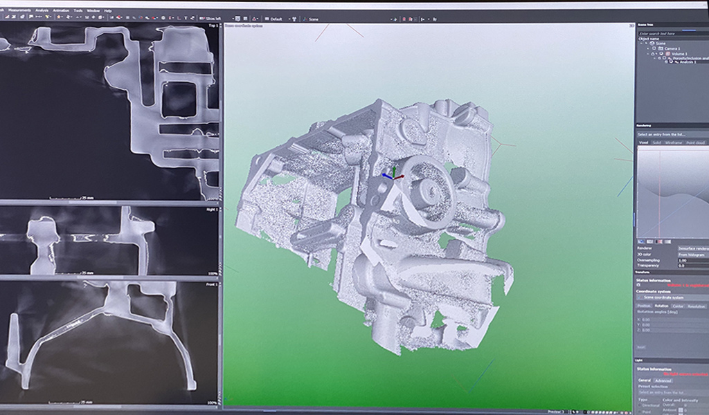 Dall’analisi Tomografica si ottiene una nuvola di punti: cioè un insieme di punti caratterizzati da coordinate precise e da valori di intensità collegati. Se necessario la nuvola di punti può essere elaborata attraverso altri tipi di software, al fine di ottenere un’immagine tridimensionale del campione in analisi (ed in seguito il modello CAD relativo).