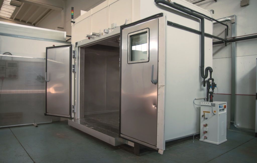 Con un’altezza di 2800 mm, profondità 2200 mm, larghezza 2500 mm, sono davvero grandi i particolari di cui si può verificare la resistenza all’invecchiamento accelerato, simulando in atmosfera artificiale gli agenti atmosferici, con shock termici e variazioni di temperatura e umidità.