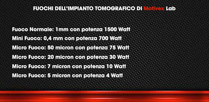 Di seguito, trovi l’elenco dei fuochi dell’impianto tomografico di MotivexLab: