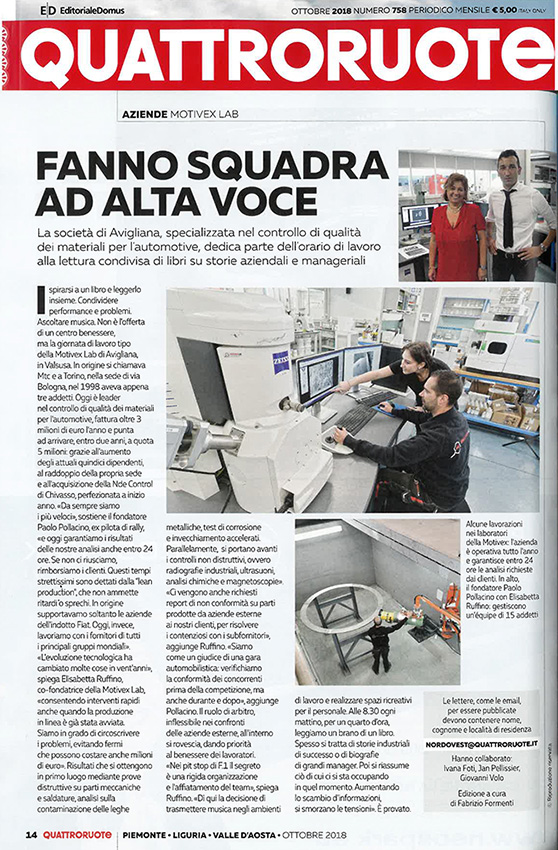 Anche QUATTRORUOTE ha parlato di questa grande notizia e di come MotivexLab si impegna tutti i giorni per garantire i risultati dei test in 24 ore.