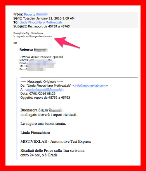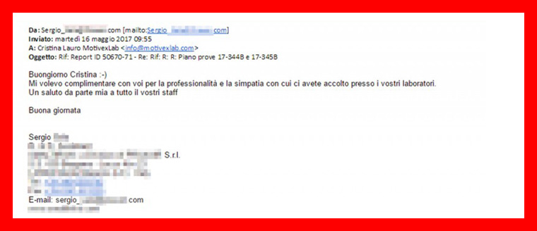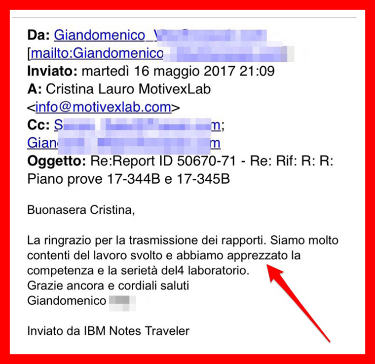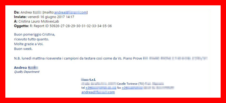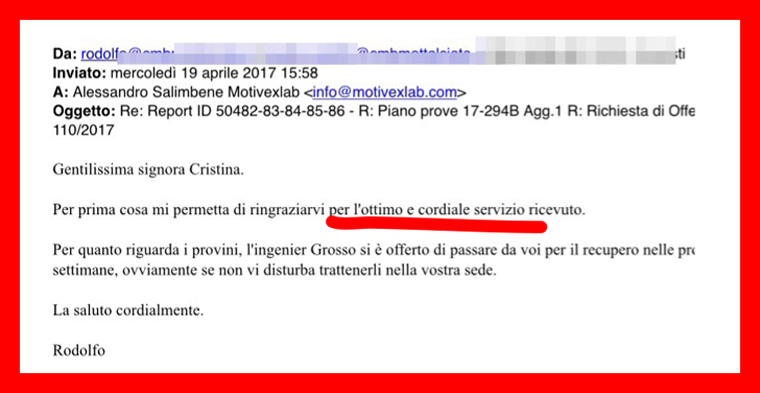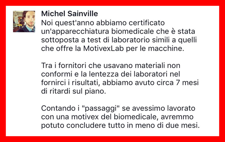 “Un collega mi ha consigliato MotivexLab, che io non conoscevo, perché nell’azienda dove lavoravo precedentemente non vi era necessità di appoggiarsi a laboratori esterni.