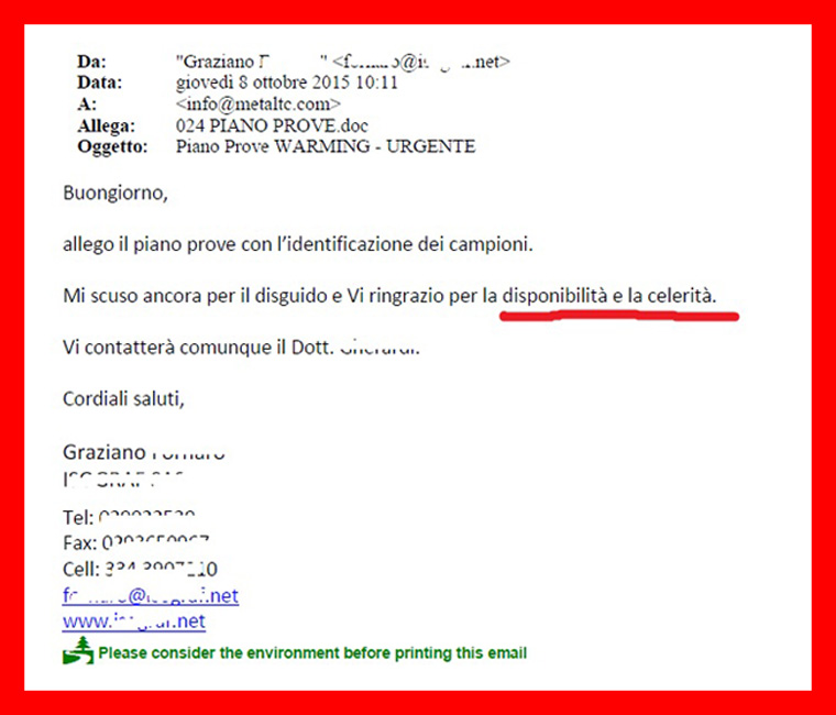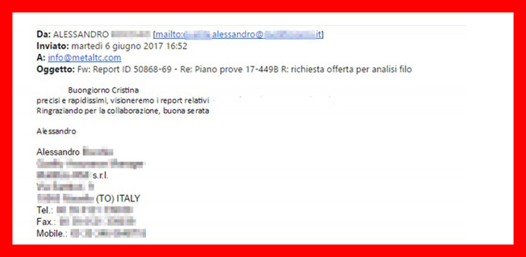 A mia volta sono stato consigliato da un collega e per questo mi sono fidato subito, anche se prima mi rivolgevo ad un altro laboratorio prove.
