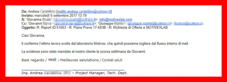 Ho scoperto MotivexLab grazie alla storicità di rapporti con MTC srl, e ne ho subito avuto un’ottima opinione, nata dalle precedenti esperienze con il laboratorio prove.