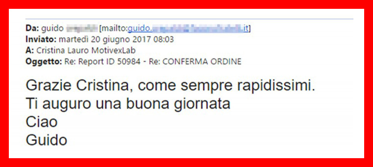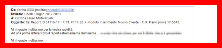 “Il motivo principale per cui abbiamo scelto di affidarci al laboratorio MotivexLab è stata la tempistica con cui garantiscono la consegna dei report.
