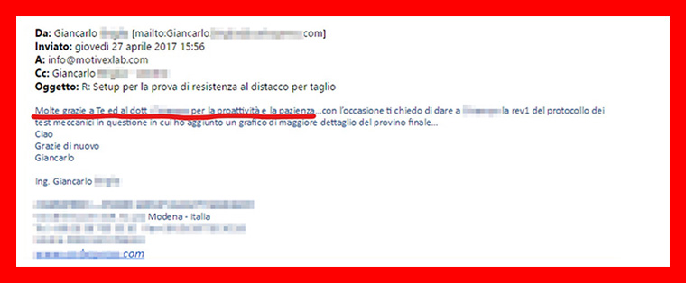 Prima di rivolgermi a MotivexLab facevo le prove distruttive presso un altro laboratorio conto terzi.