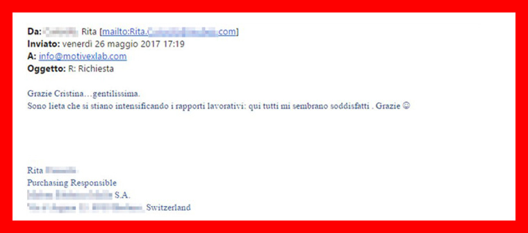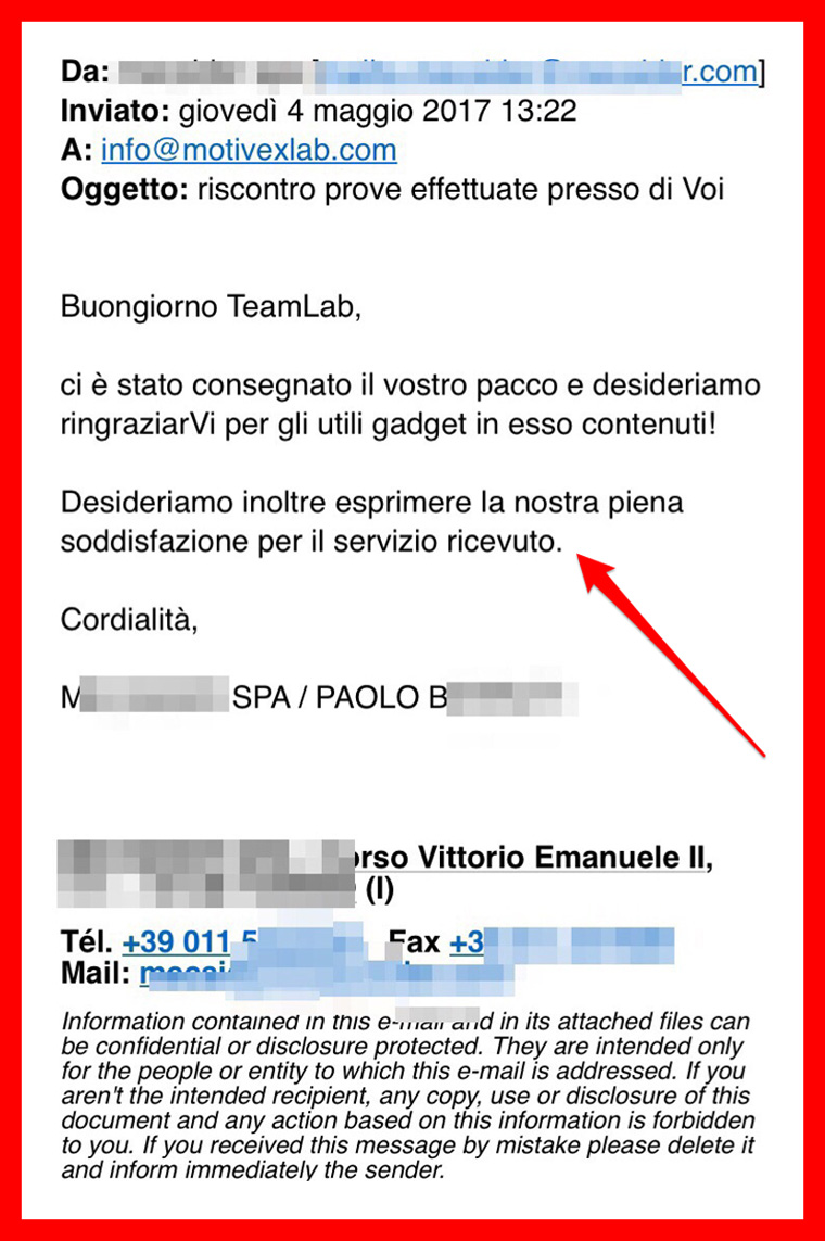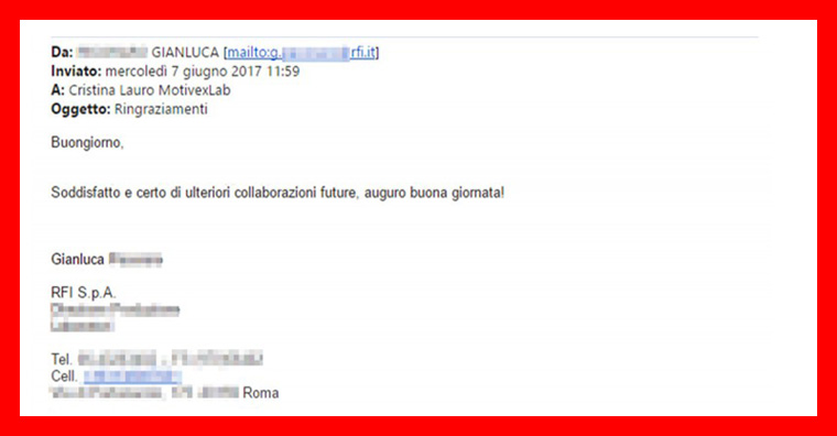 “Ho conosciuto il laboratorio in una precedente esperienza lavorativa e prima che la mia azienda attuale adottasse i suoi servizi avevoun’opinione positiva di MotivexLab.