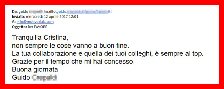 Dai primi contatti ho avuto un’ottima impressione e se devo dire cosa preferisco del servizio MotivexLab è certamente la  rapidità.