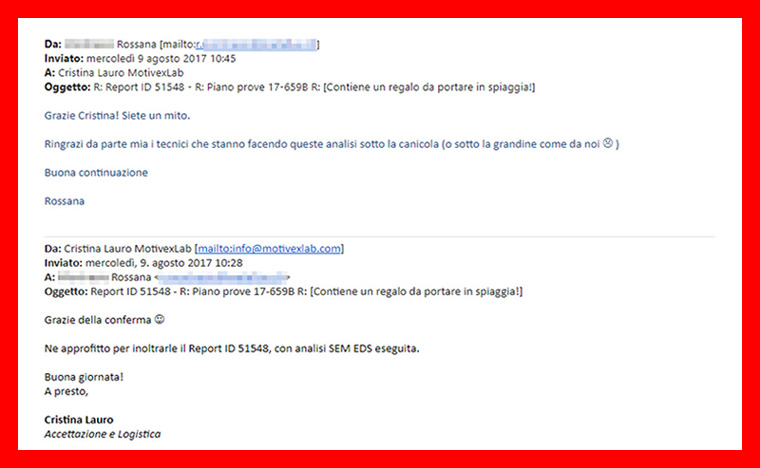Dopo aver affidato una delicata Failure Analysis al laboratorio MTC MotivexLab ed aver ottenuto i risultati con una celerità mai riscontrata in altri laboratori, quando necessitiamo di un test, non abbiamo più dubbi sul chi interpellare!